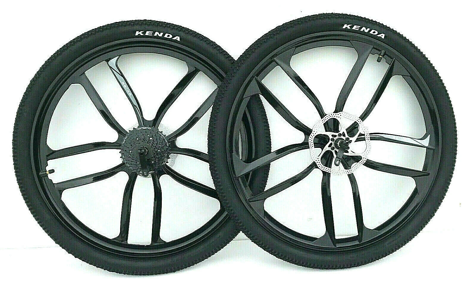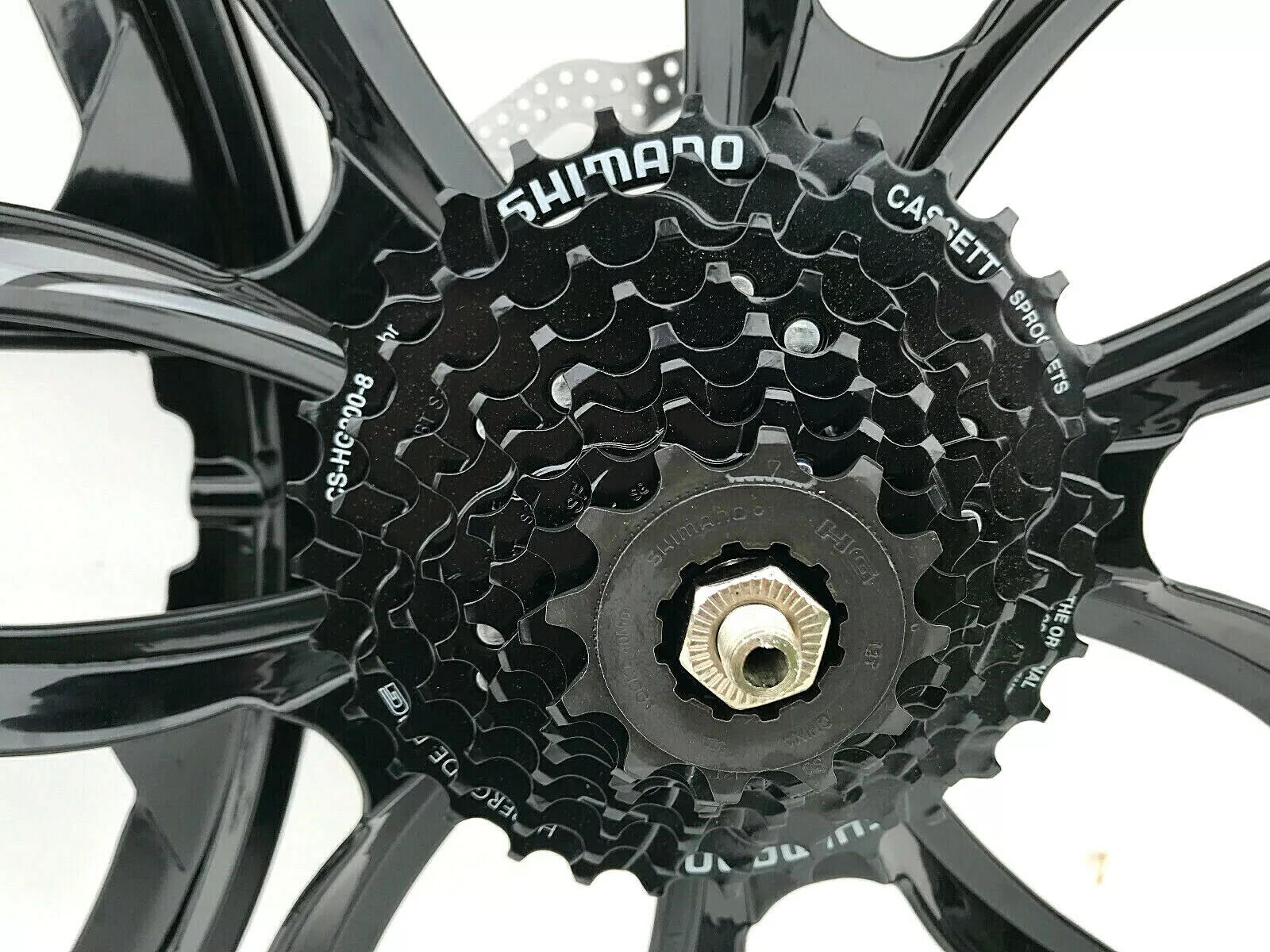 PAIR 26 inch MAGNESIUM WHEELS 8 speed SHIMANO BLACK WHITE 10 BLADE FRONT REAR