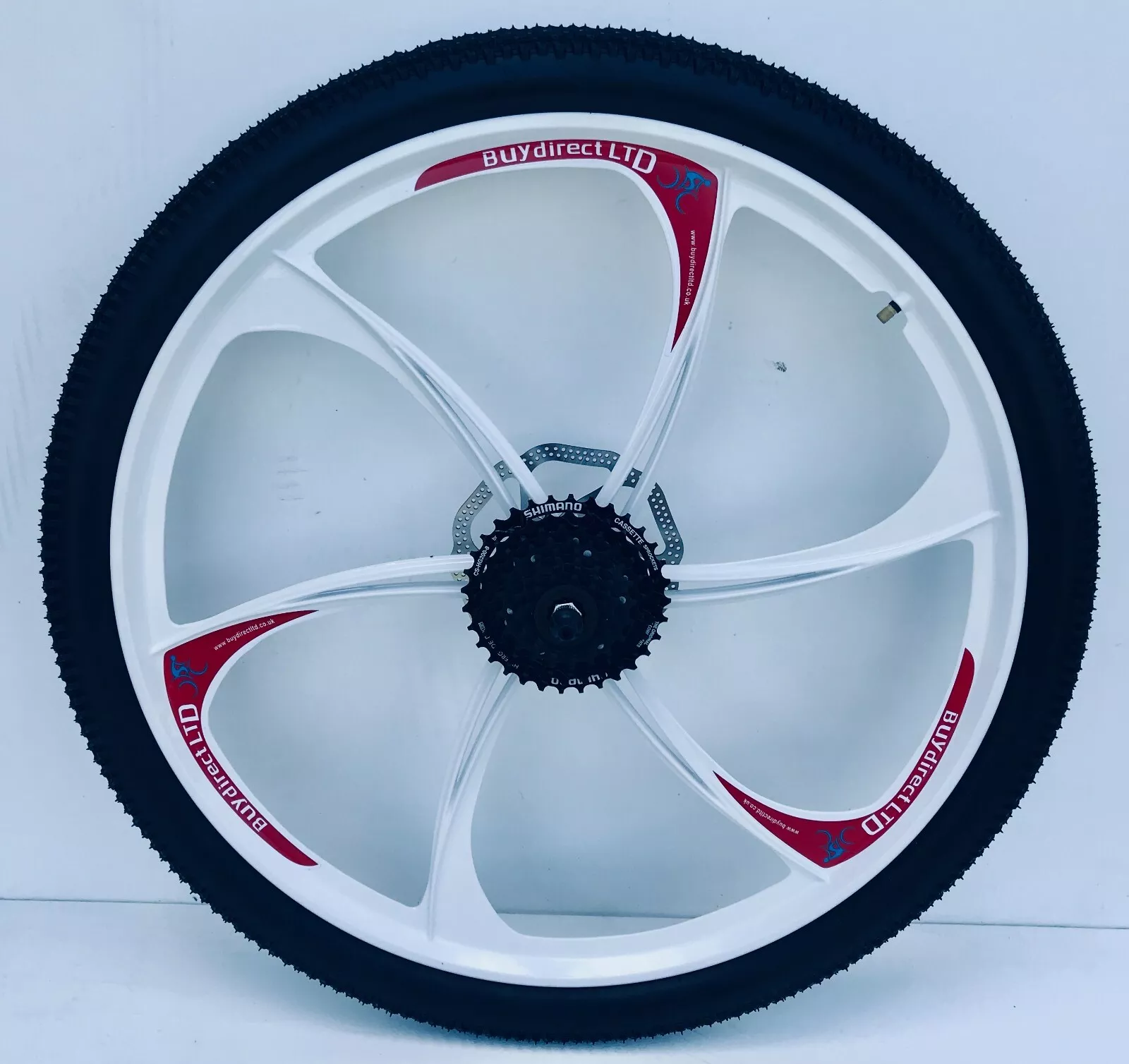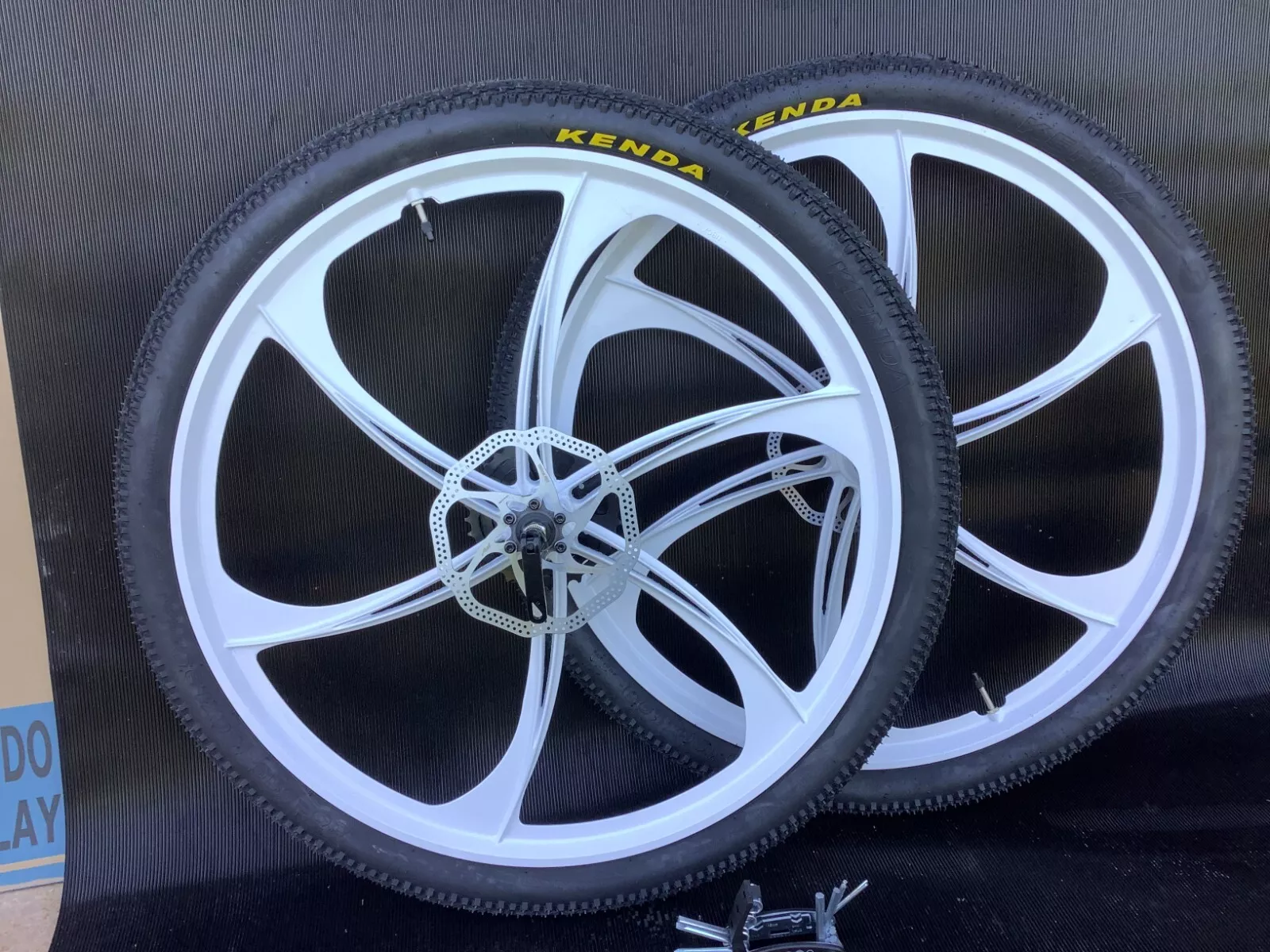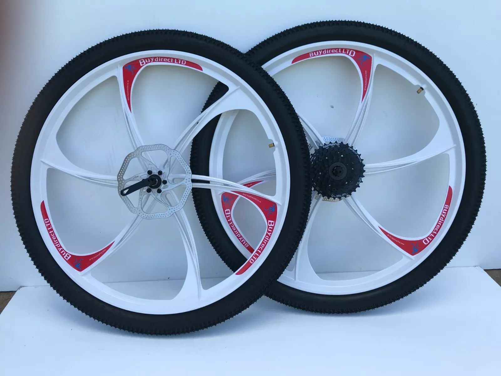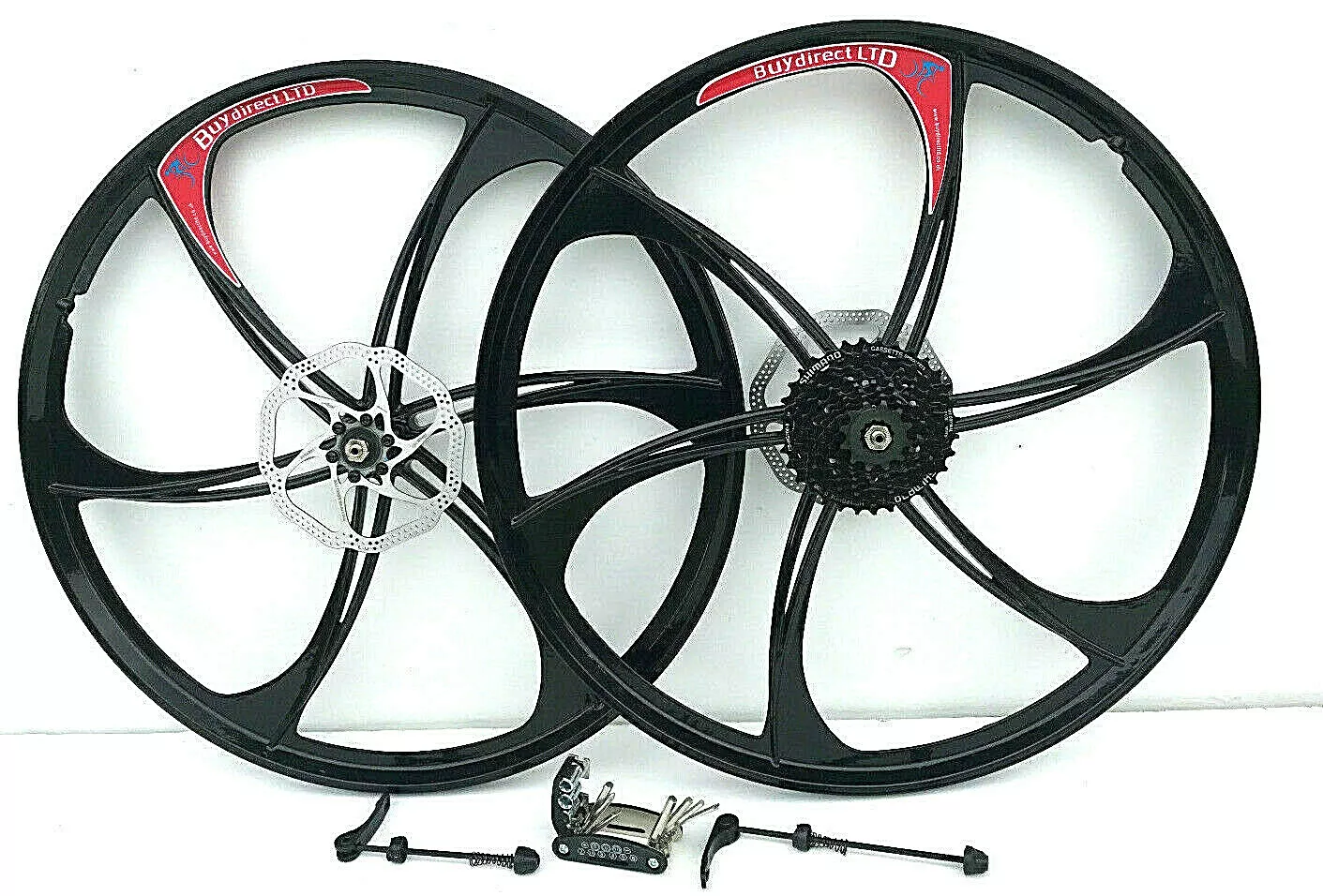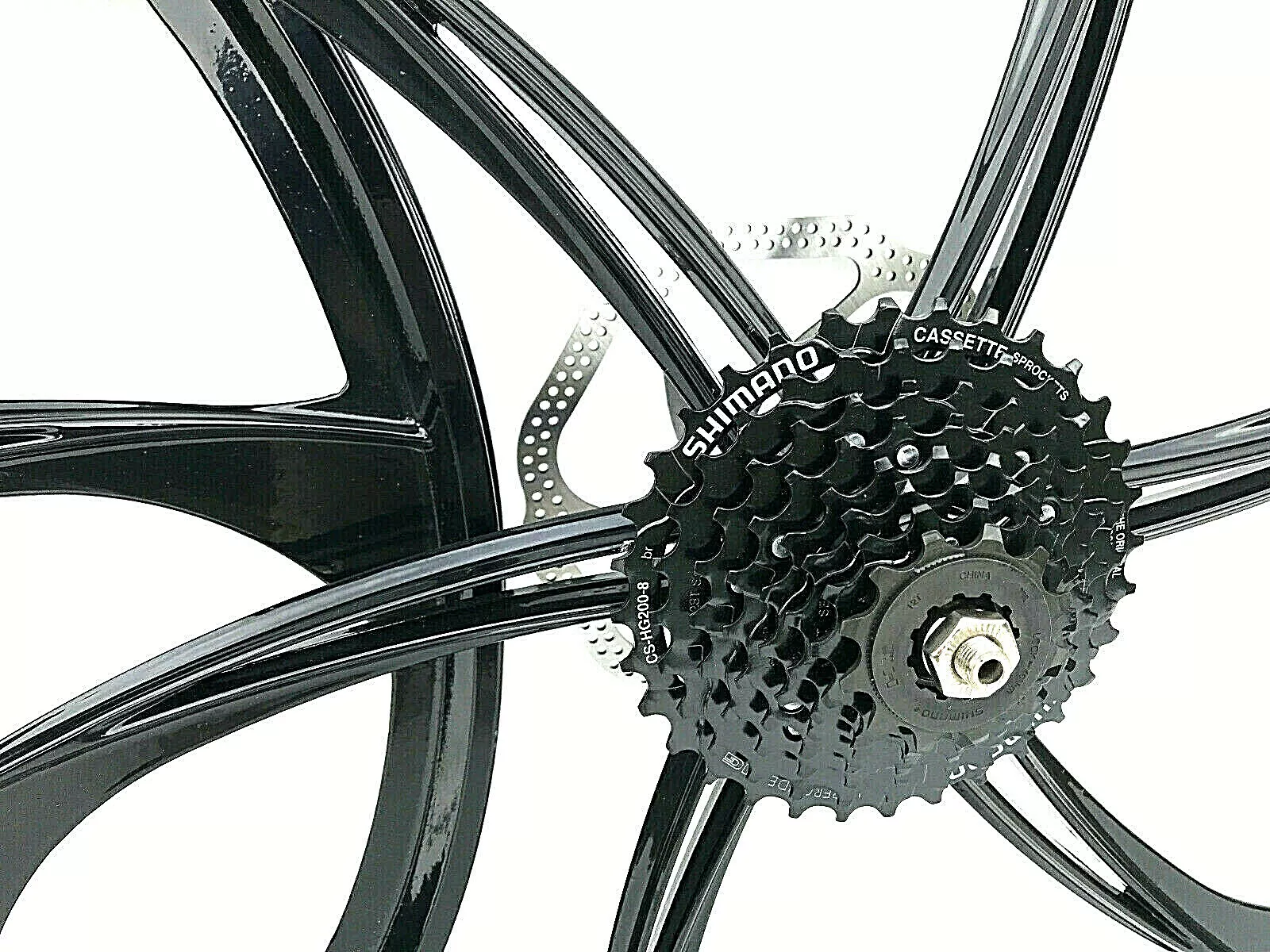 PAIR FRONT REAR MAGNESIUM BIKE WHEELS 8 SPEED SHIMANO 26 INCH WHEELSET 6 BLADE 8 SPEED