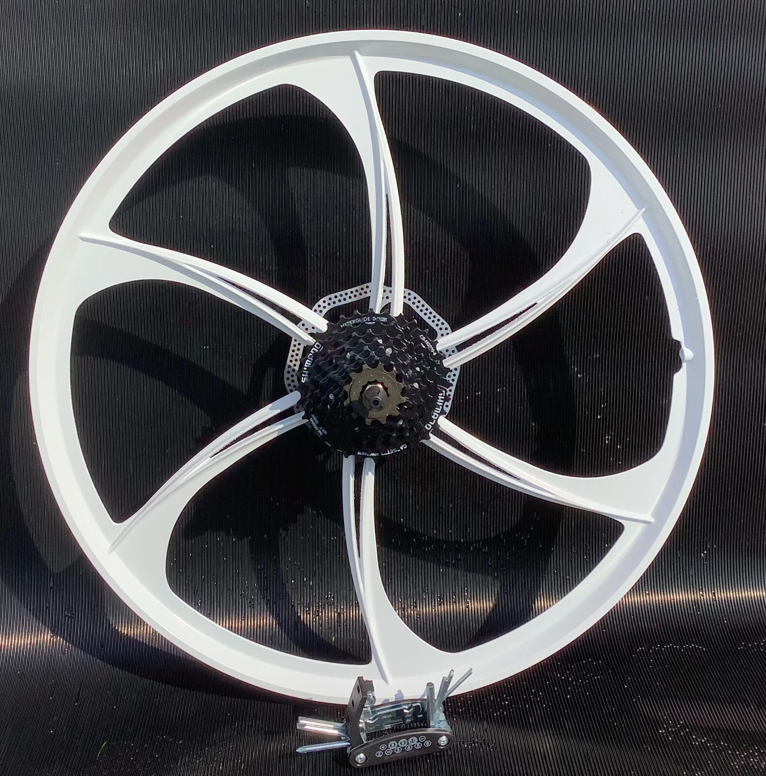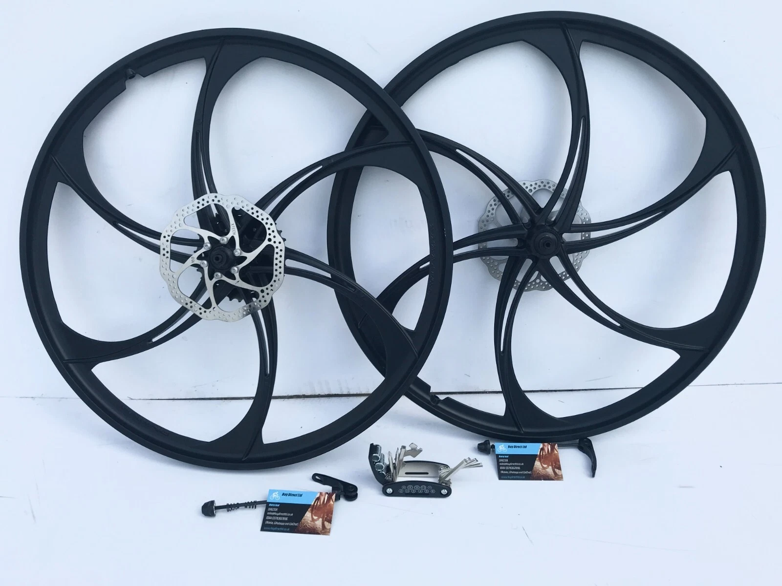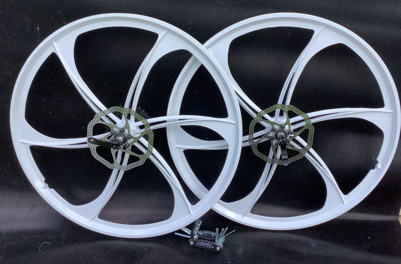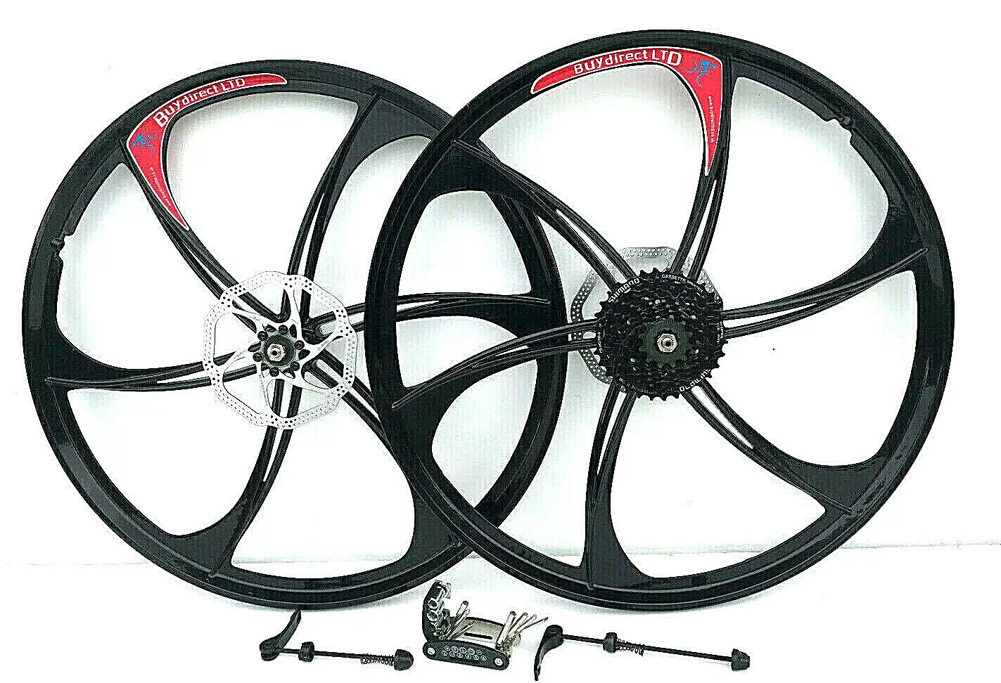 PAIR MAGNESIUM BIKE WHEELS 26 INCH 8 SHIMANO SPEED 2 DISC TOOL KIT 6 BLADE